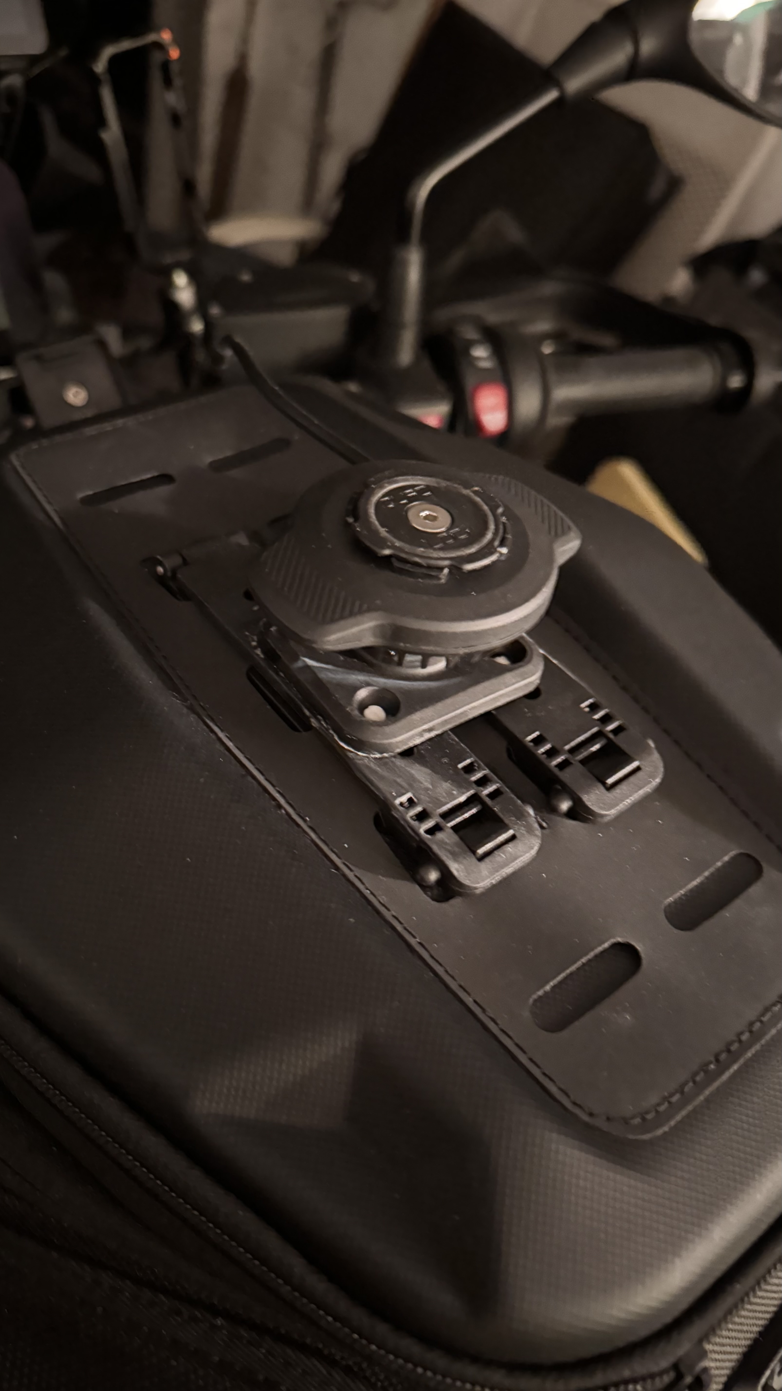 Ob ich nun den Quadlock Ladekopf wirklich drauflasse oder eine einfache Klemme nutze werde ich in den kommenden Tagen erfahren. Ich konnte noch kein Foto mit dem iPhone machen, aber es sieht schon sehr affig aus, wenn es so hoch über dem Tankrucksack "schwebt".