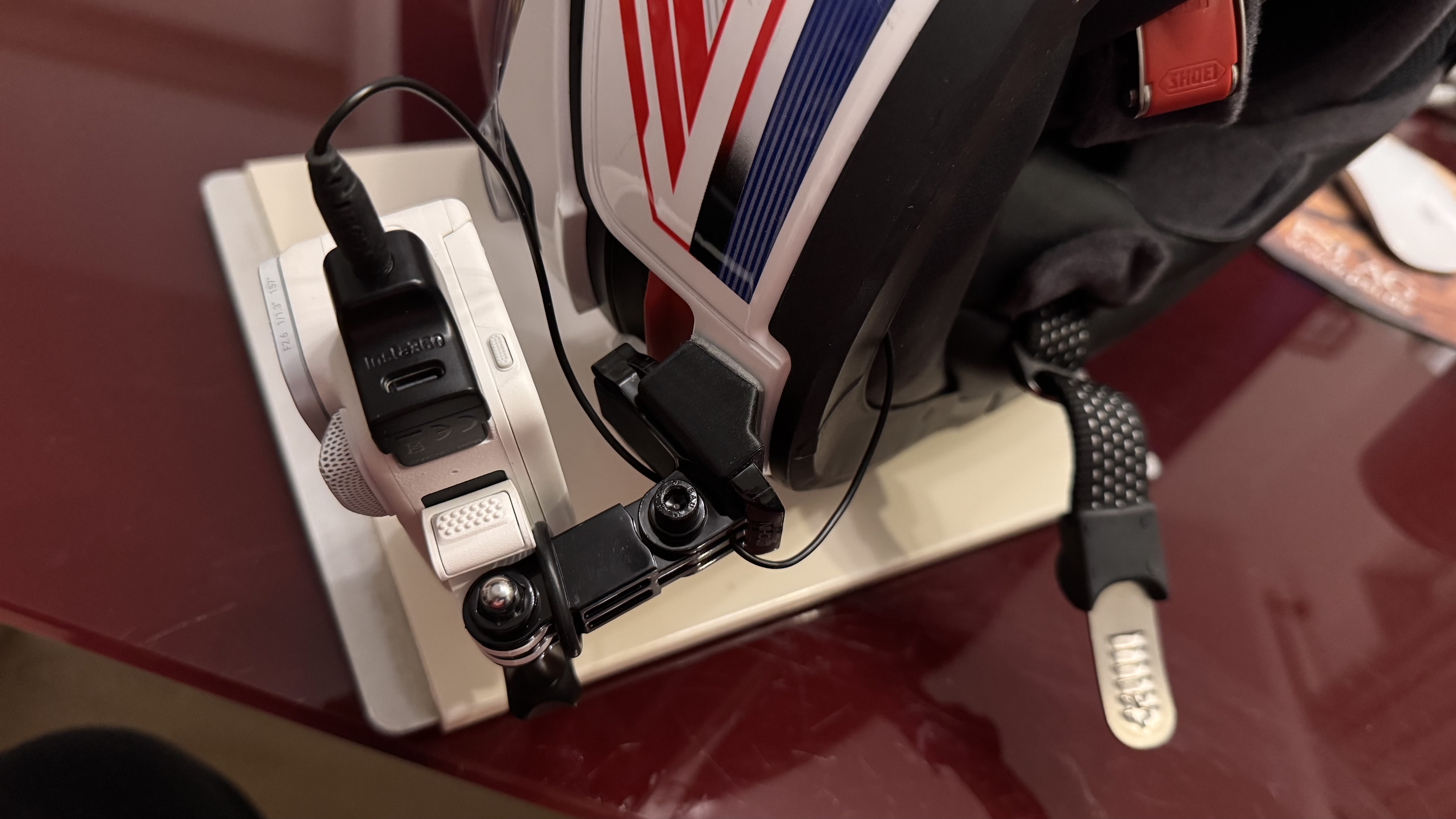 Am Helm habe ich einen Halter von Chinmount für den Neotec3.