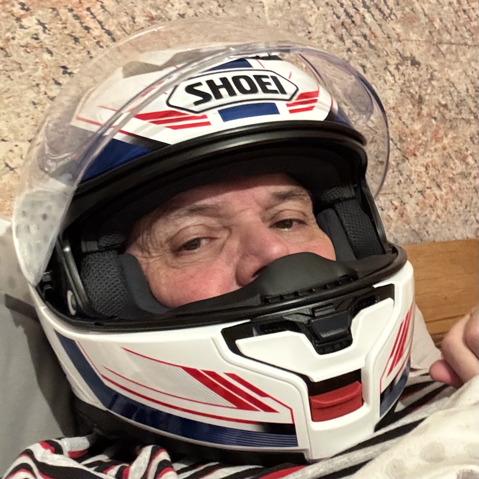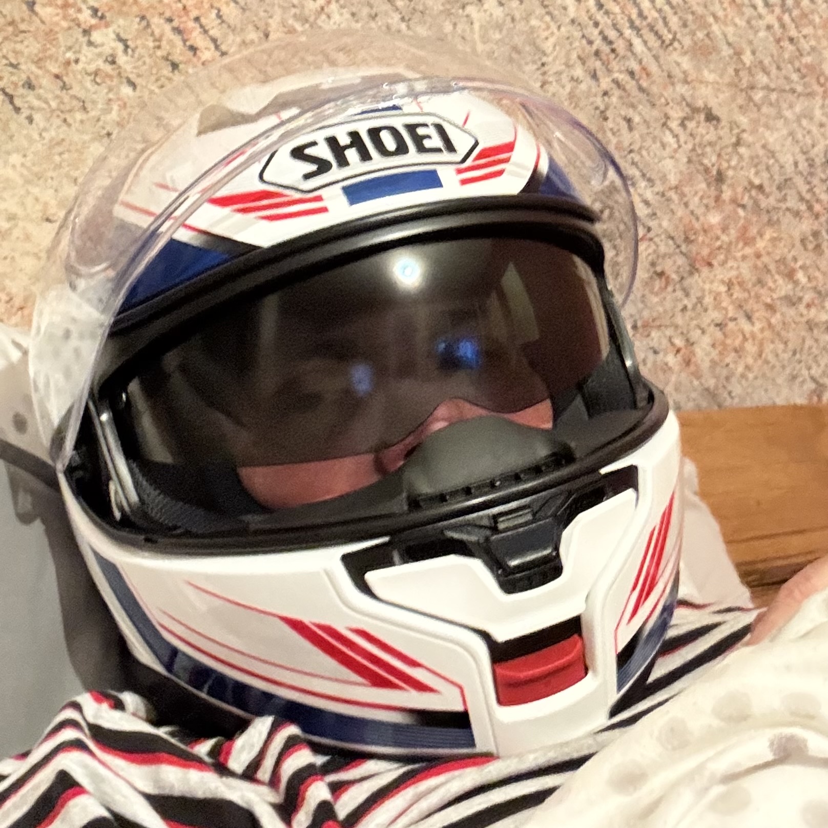 Dazu Stiefel und Handschuhe von Vanucci und den Helm Shoei Neotec 3 mit dem SRL3