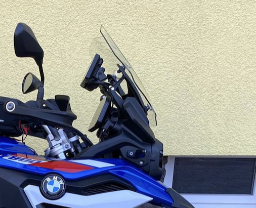 Das Gerät sitzt perfekt in dem BMW Cradle auf dem Wunderlich Bügel.