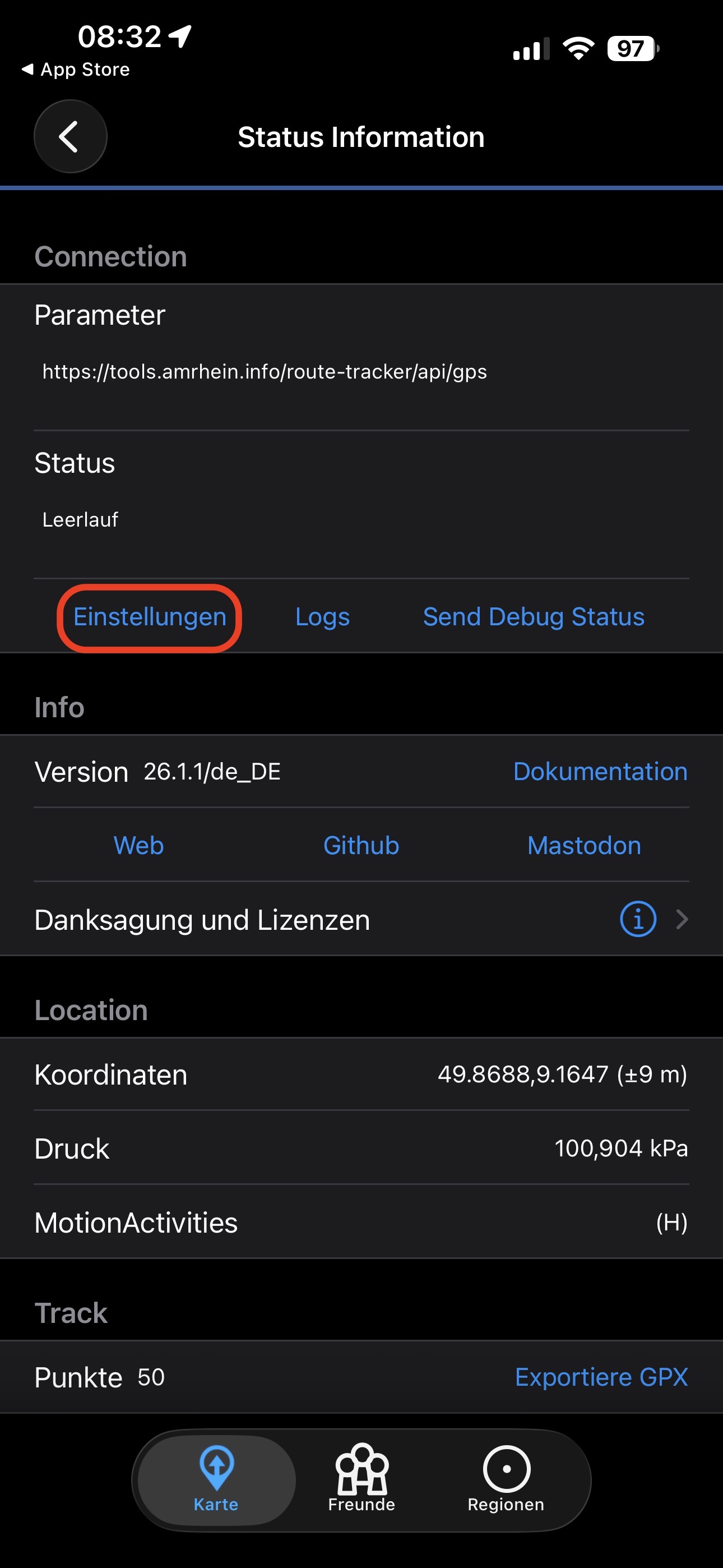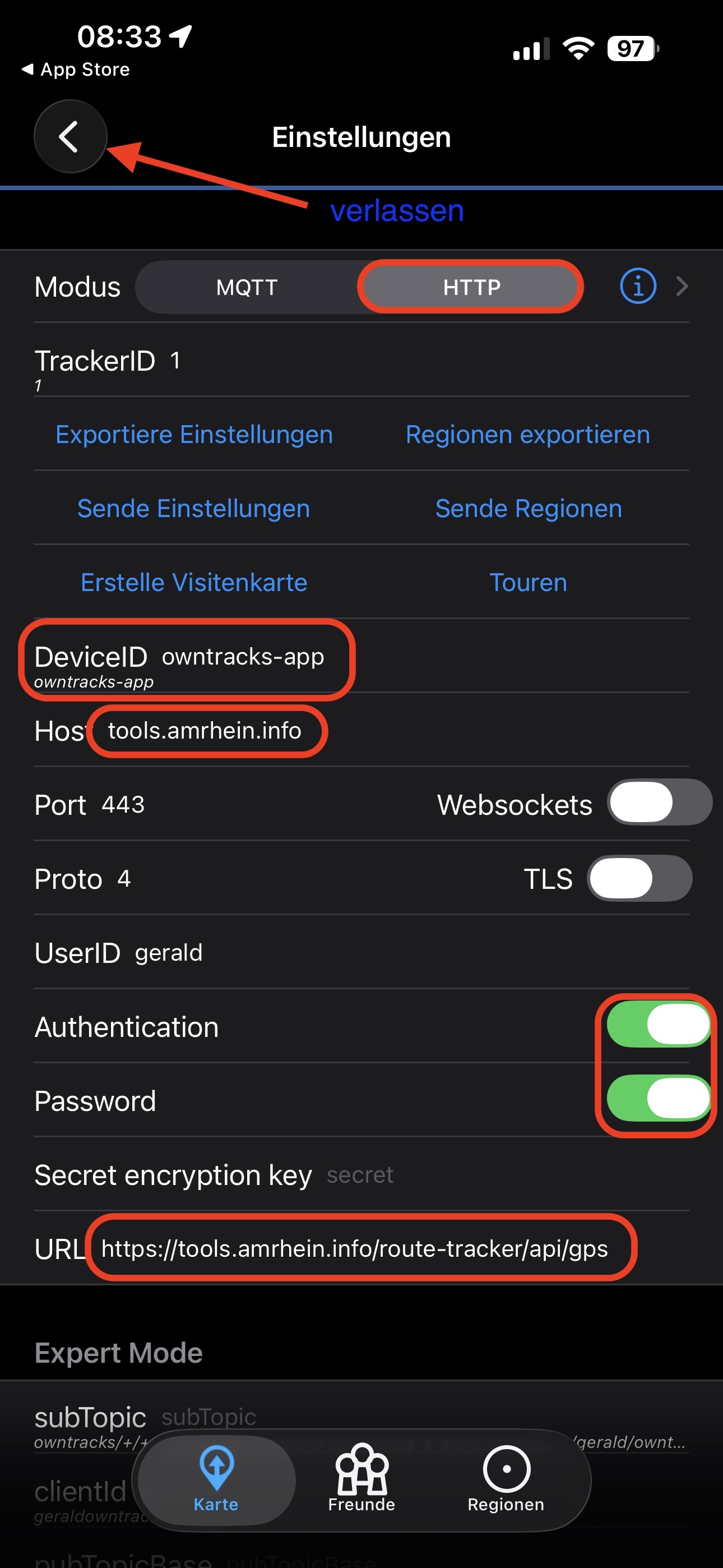 Unten auf der Seite findest Du die Daten zur Einrichtung